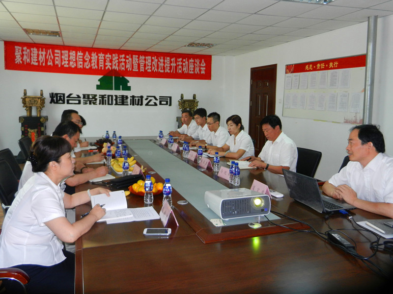 常務(wù)副總經(jīng)理馬現(xiàn)來(lái)首先向集團(tuán)公司領(lǐng)導(dǎo)匯報(bào)了聚和建材非公有制經(jīng)濟(jì)人士理想信念教育實(shí)踐活動(dòng)、“強(qiáng)化責(zé)任心、樹立事業(yè)心、提高忠誠(chéng)度”活動(dòng)的開展情況以及管理改進(jìn)提升的方針措施,并結(jié)合煙臺(tái)砂漿市場(chǎng)現(xiàn)狀將公司兩年規(guī)劃做了詳細(xì)闡述。