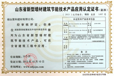 2013年10月10日,我公司生產(chǎn)的膨脹聚苯板薄抹灰外墻外保溫系統(tǒng)被山東省住房和城鄉(xiāng)建設(shè)廳列為山東省新型墻材建筑節(jié)能技術(shù)產(chǎn)品,具備了生產(chǎn)外墻外保溫系統(tǒng)的膠粘劑和抹面膠漿的條件。 另外,公司還研發(fā)了灌漿料、瓷磚膠、聚合物防水砂漿、內(nèi)墻膩?zhàn)、抗裂砂漿等新產(chǎn)品,部分產(chǎn)品取得了省級(jí)以上檢測(cè)機(jī)構(gòu)的檢測(cè)報(bào)告。