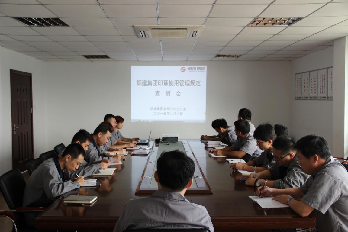 2015年8月18日上午,聚和建材、東泰物流在駐地會議室組織召開《煙建集團(tuán)印章使用管理規(guī)定》宣貫會,領(lǐng)導(dǎo)班子成員、各處室負(fù)責(zé)人參加了會議。
